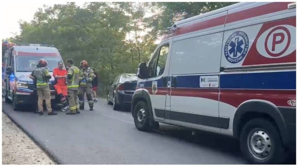 Rzecznik prasowy Łódzkiego Komendanta Wojewódzkiego PSP, bryg. Jędrzej Pawlak, poinformował, że pierwsze zgłoszenie o zdarzeniu wpłynęło o godz. 18:03. Dodał również, że miejsce zdarzenia znajduje się na leśnym odcinku drogi, a lądowisko dla śmigłowców ratunkowych było oddalone o około kilometr. Z tego względu strażacy zajmowali się transportem załóg lotniczych do miejsca wypadku.