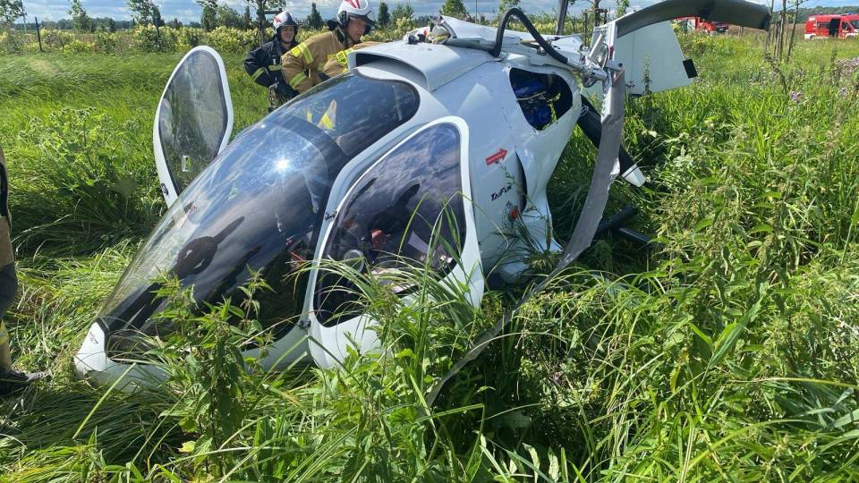 Wypadek lotniczy w Łódzkiem: Wiatrakowiec runął na ziemię, w maszynie były dwie osoby [Foto]