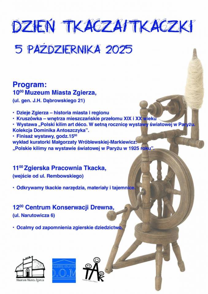 Już w najbliższą sobotę, 5 października, Zgierz stanie się tętniącym życiem centrum spotkań z historią, rzemiosłem i sztuką użytkową. Wszystko za sprawą Dnia Tkacza/Tkaczki – wydarzenia, które odbędzie się w kilku wyjątkowych miejscach związanych z dziedzictwem miasta i regionu.